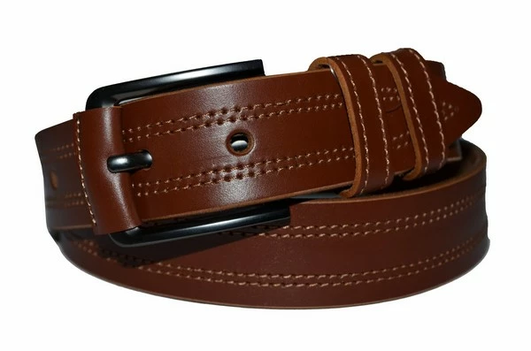 Ремень Кожаный Джинсовый Рыжий Строченый